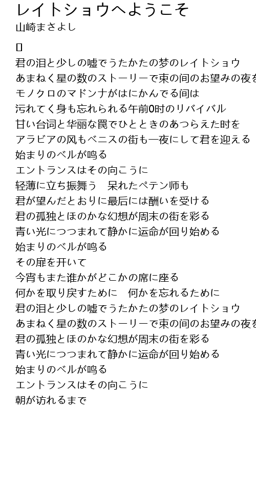 | アラビアの风もベニスの街も一夜にして君を迎える | |