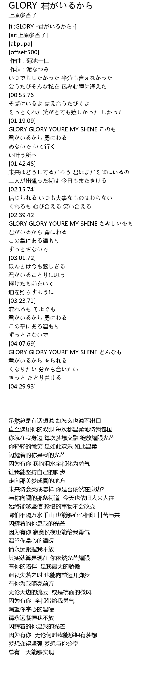 | [02:40.17] | GLORY GLORY YOURE MY SHINE ye |