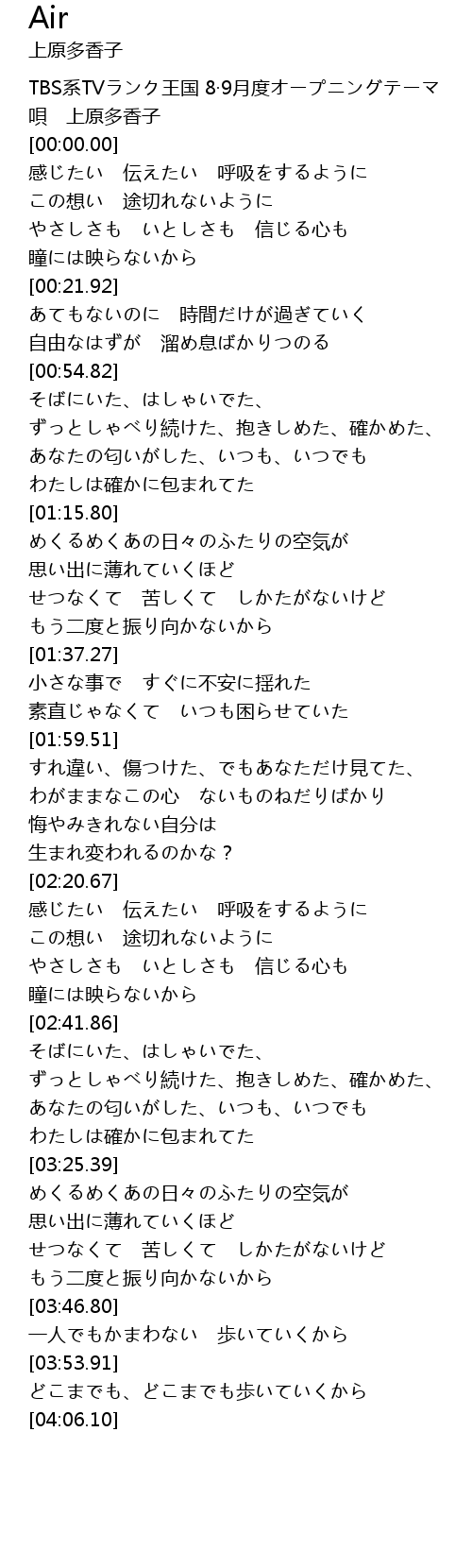 | [00:01.16] | 感じたい 伝えたい 呼吸をするように |