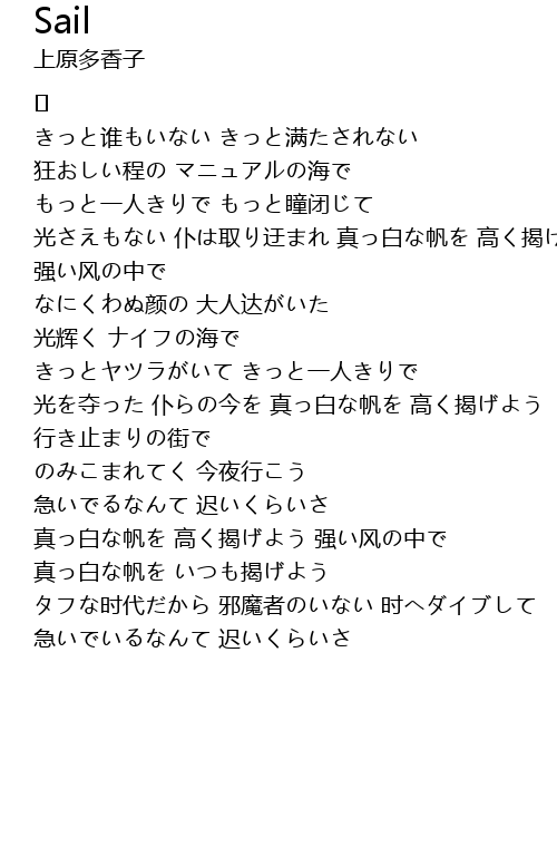 | 光さえもない 仆は取り迂まれ 真っ白な帆を 高く揭げよう | |