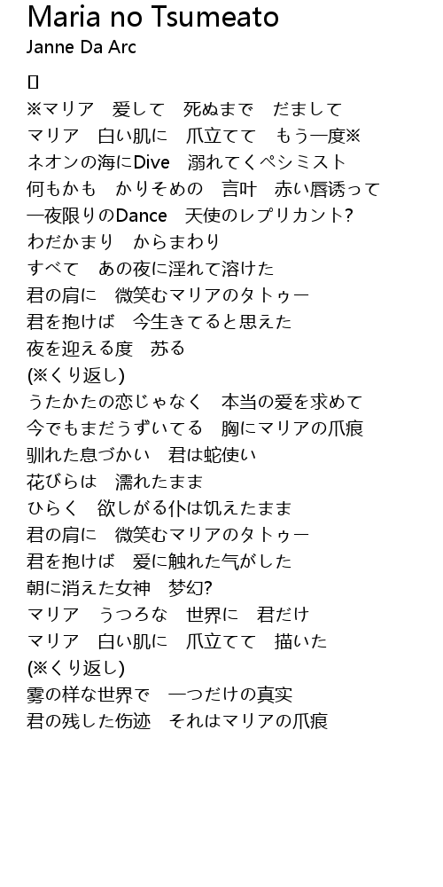 | マリア 白い肌に 爪立てて もう一度※ | |