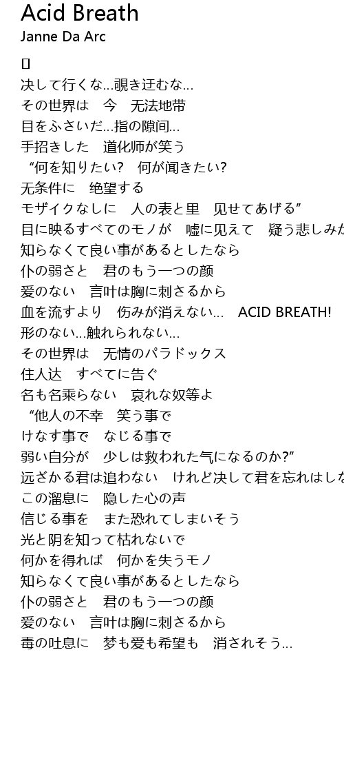 | 血を流すより 伤みが消えない… ACID BREATH! | |