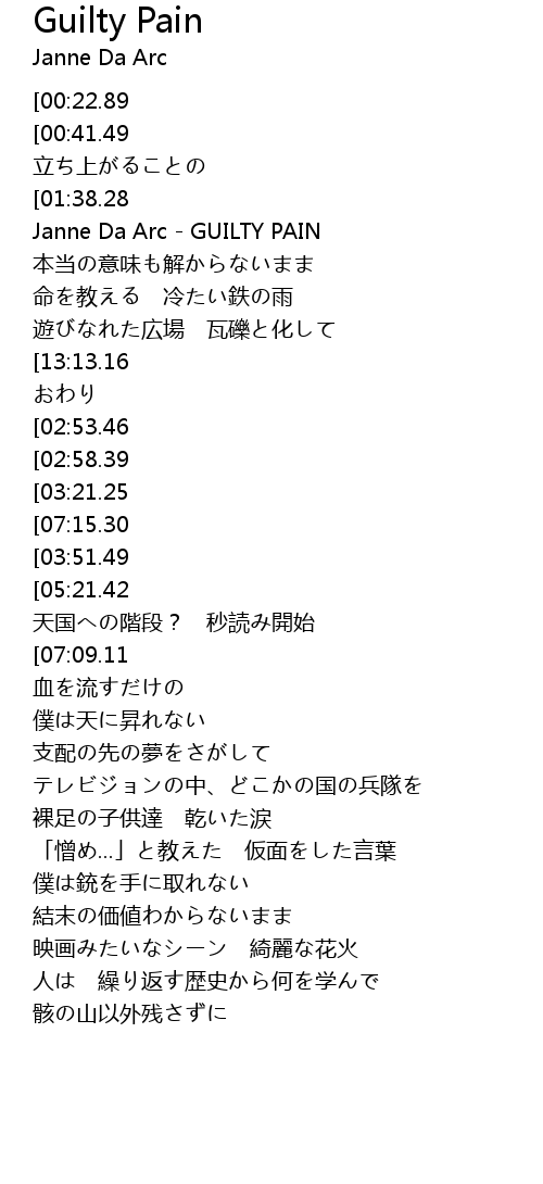 | [01:42.22] | Janne Da Arc - GUILTY PAIN |