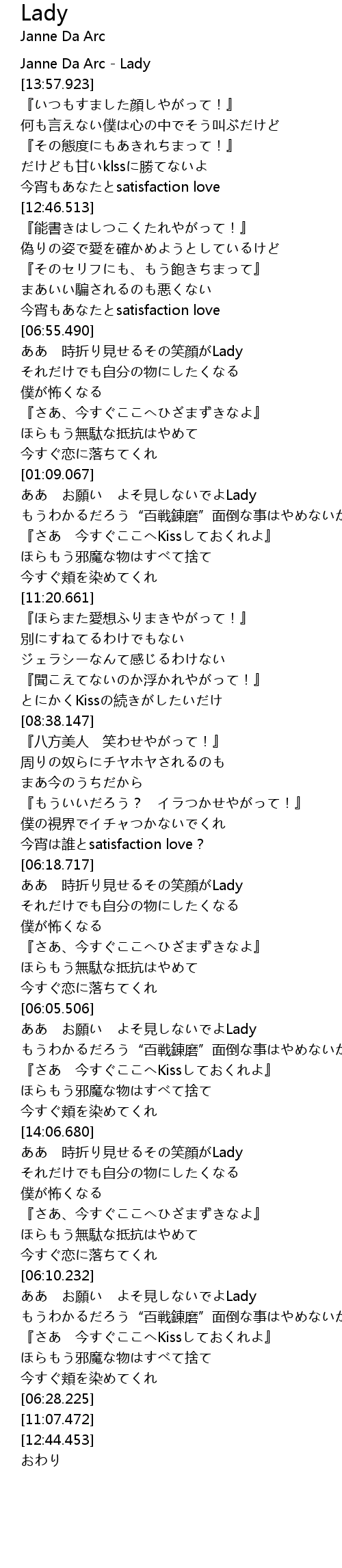 | [04:56.401] | Janne Da Arc Lady |