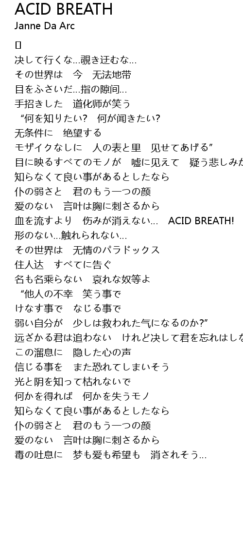 | 血を流すより 伤みが消えない… ACID BREATH! | |