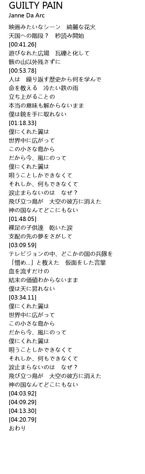 | [00:45.77] | 遊びなれた広場 瓦礫と化して |