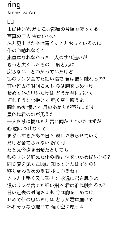 | 银のリング消えた仆の指は 何をつかめばいいの? | |