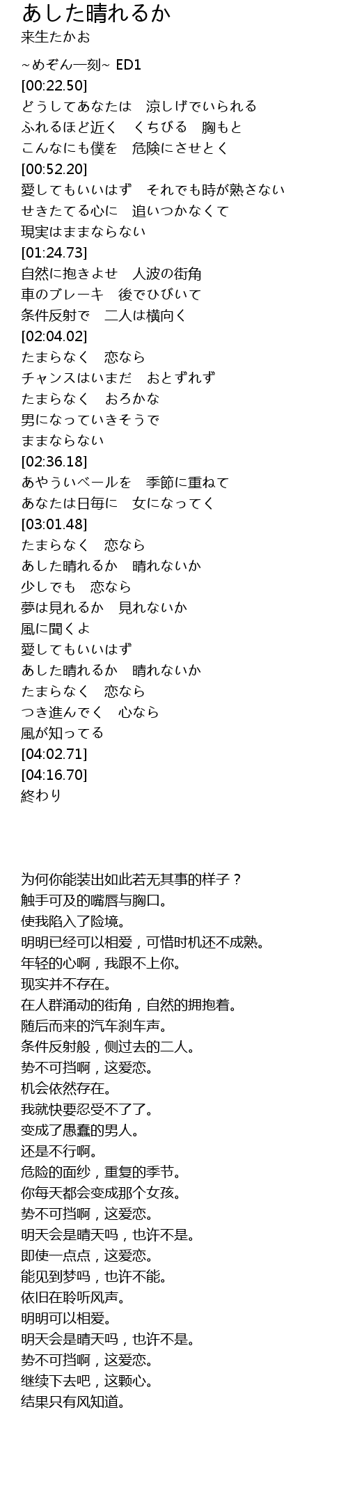 | [03:10.04] | あした晴れるか 晴れないか |