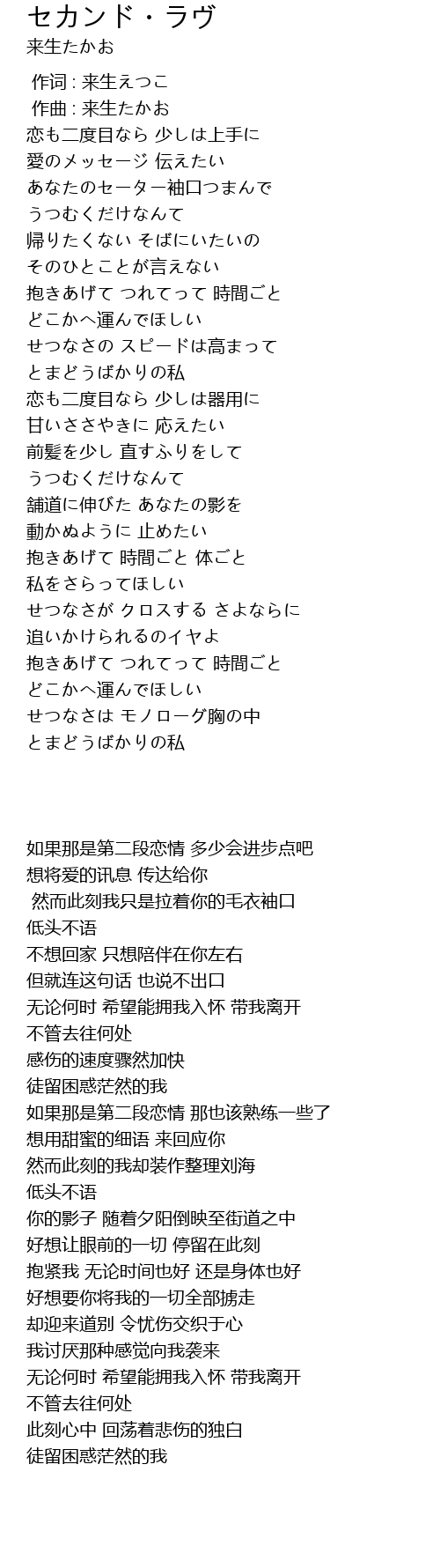 | [00:01.000] | 作曲 : 来生たかお |