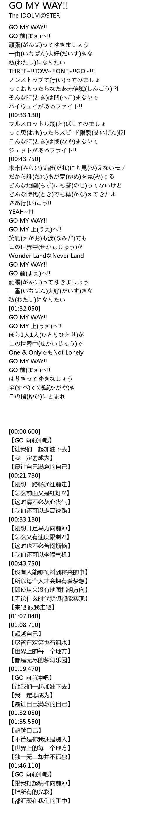 | [01:35.550] | GO MY WAY!! |