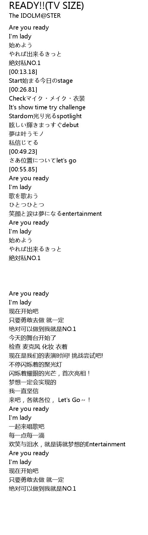 | [00:28.30] | Checkマイク・メイク・衣装 |