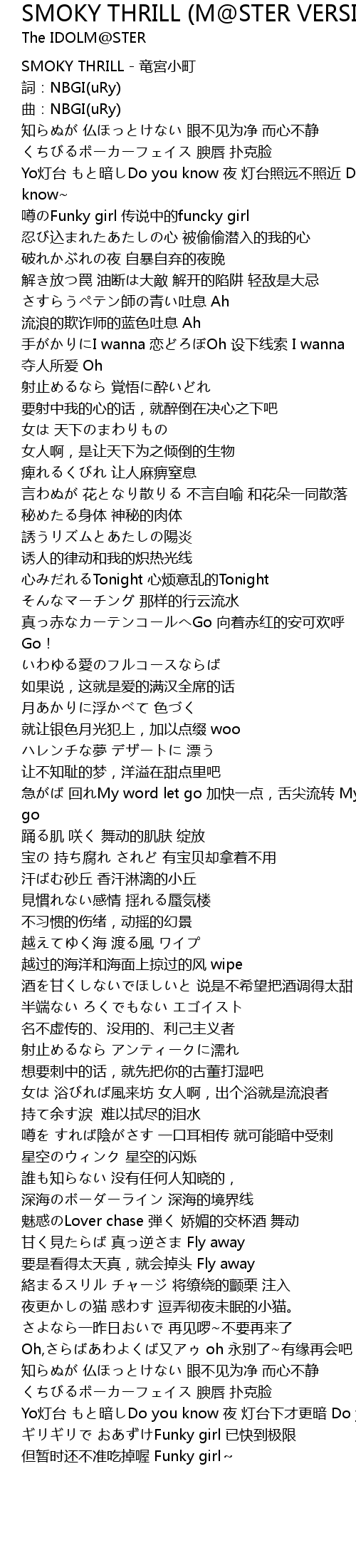 | [00:00.10] | SMOKY THRILL lóng gōng xiǎo tīng |