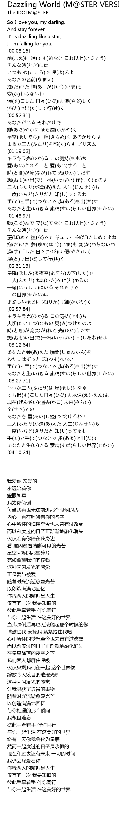 | [02:51.38] | まぶしいほどに 光(ひか)り輝(かがや)く |