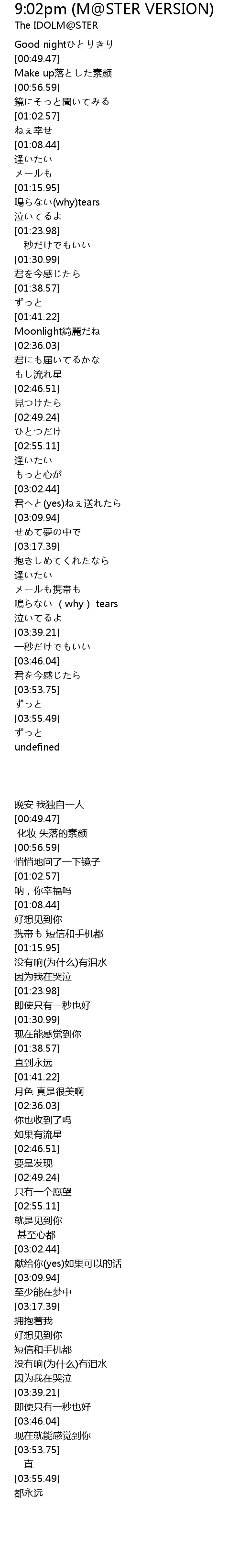 | Song | 9:02pm (M@STER VERSION) |