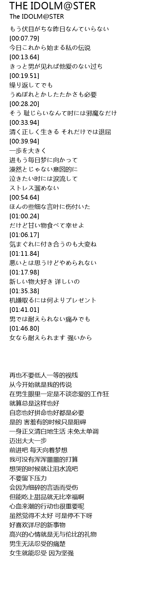 | [00:23.51] | うぬぼれとかしたたかさも必要 |