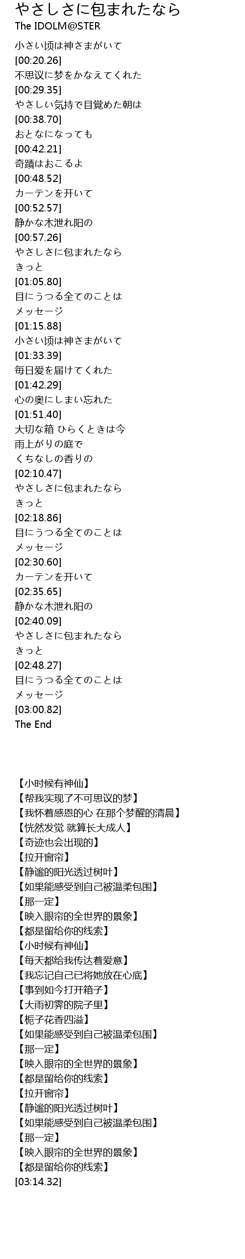 | [00:20.90] | 不思议に梦をかなえてくれた |