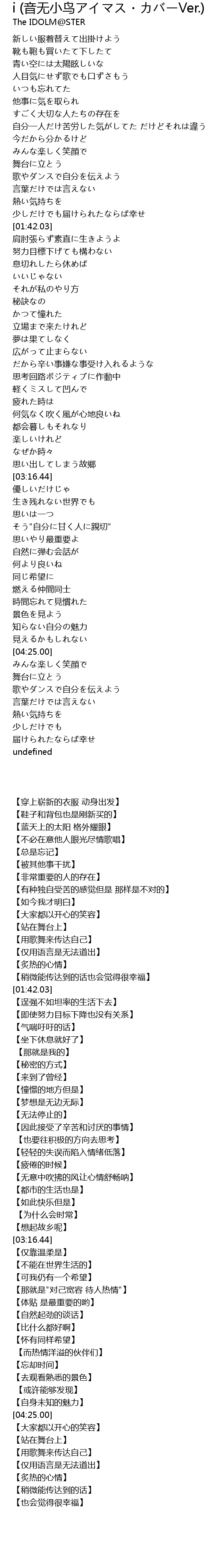 | Song | i (音无小鸟アイマス・カバーVer.) |