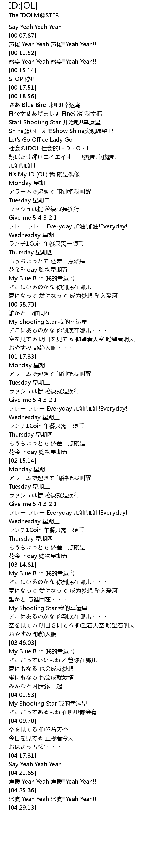 | [00:32.03] | It's My ID:(OL) 我 就是偶像 |