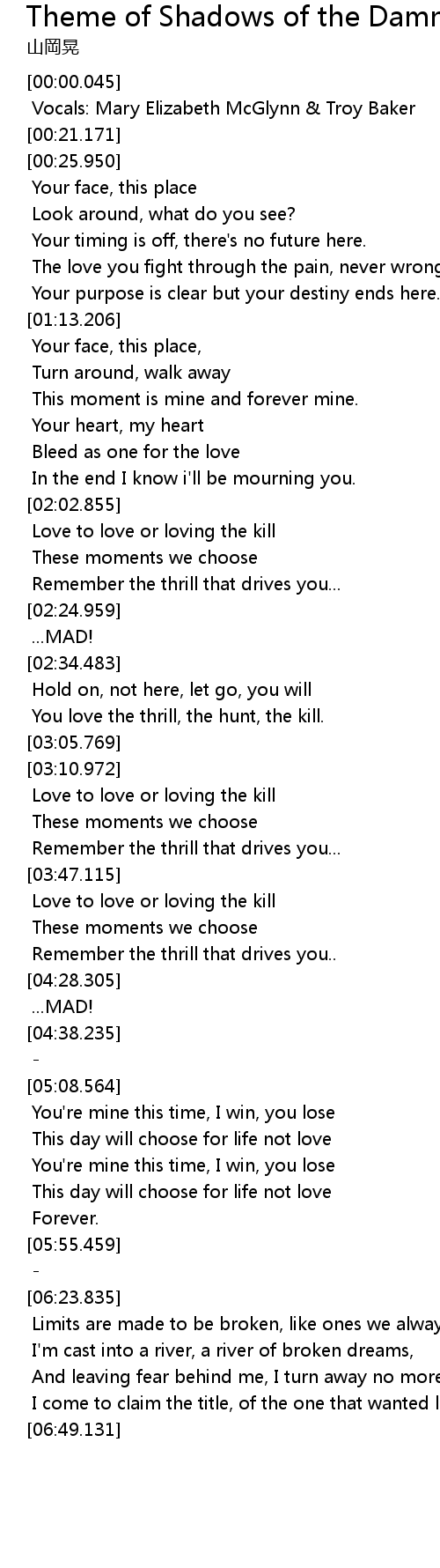 Vocals: Mary Elizabeth McGlynn & Troy Baker |