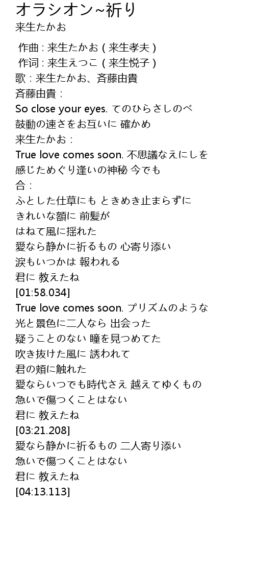 | [02:06.524] | True love comes soon. プリズムのような |