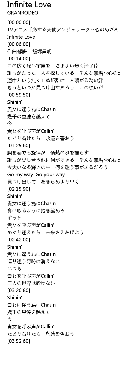 | [00:04.00] | Infinite Love |