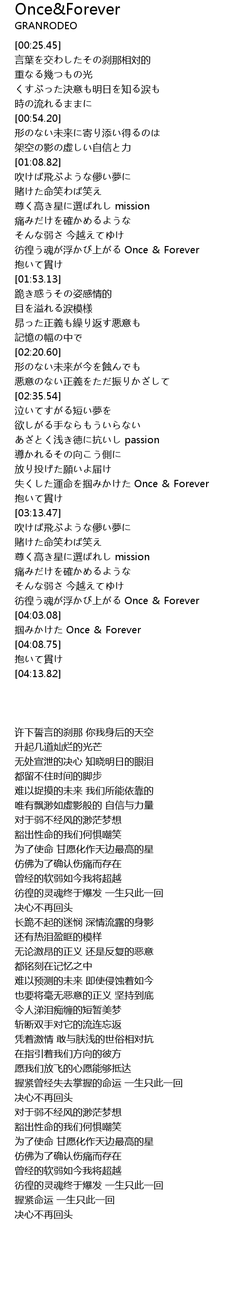 | [02:55.99] | 失くした運命を掴みかけた Once & Forever |