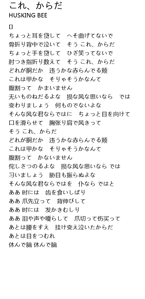 | Song | これ、からだ |