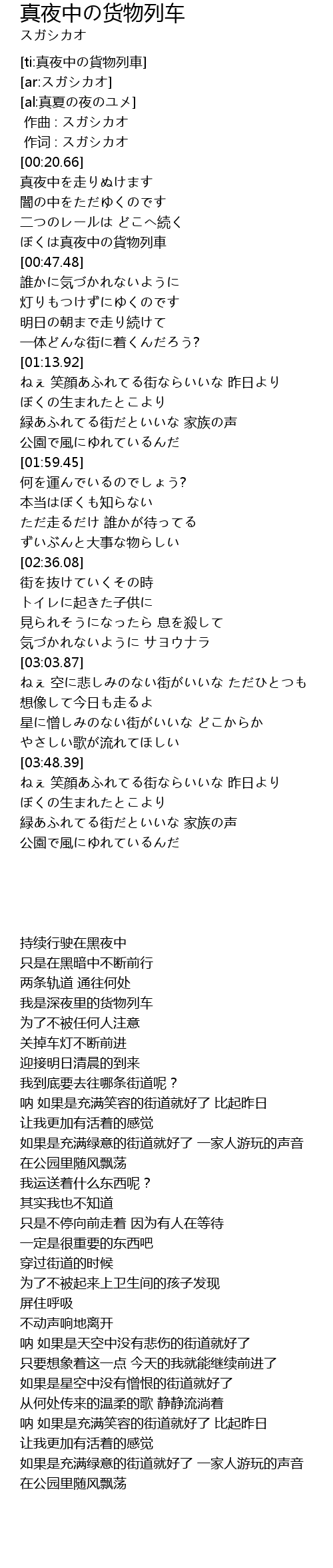 | [00:40.99] | ぼくは真夜中の貨物列車 |