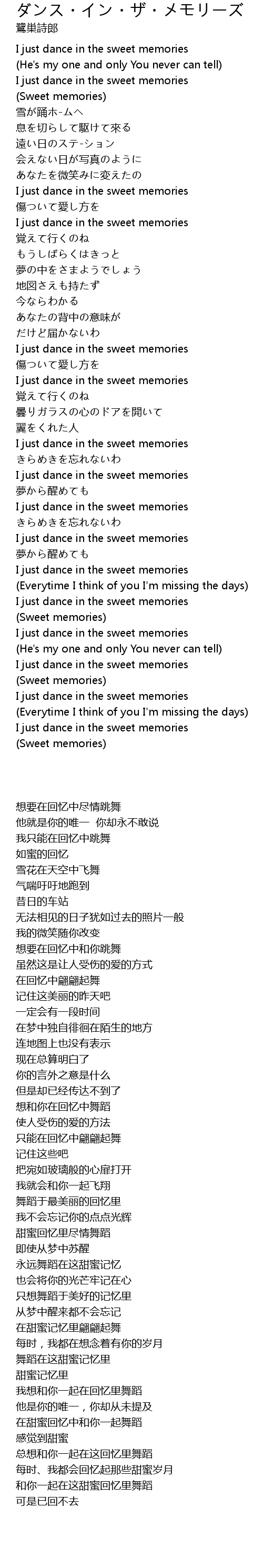 | [02:37.49] | I just dance in the sweet memories |