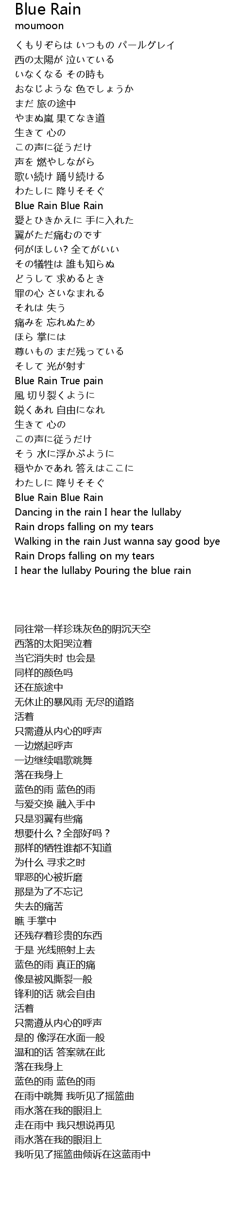 | [04:03.685] | I hear the lullaby Pouring the blue rain |