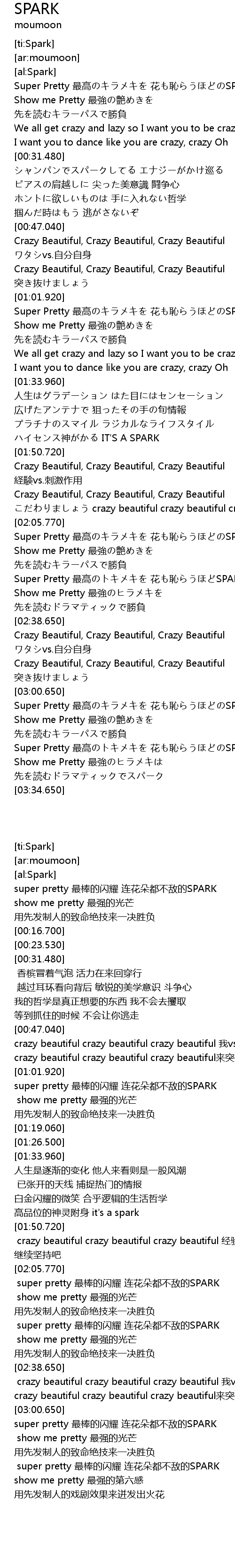 | [03:18.500] | Super Pretty zui gao hua chi SPARK |