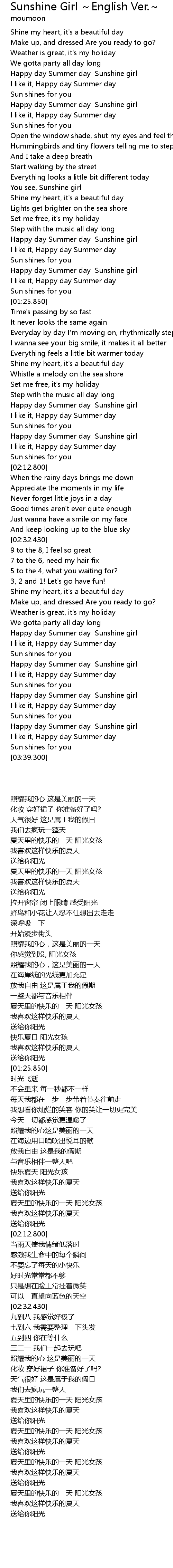 | [02:04.500] | Happy day Summer day Sunshine girl |