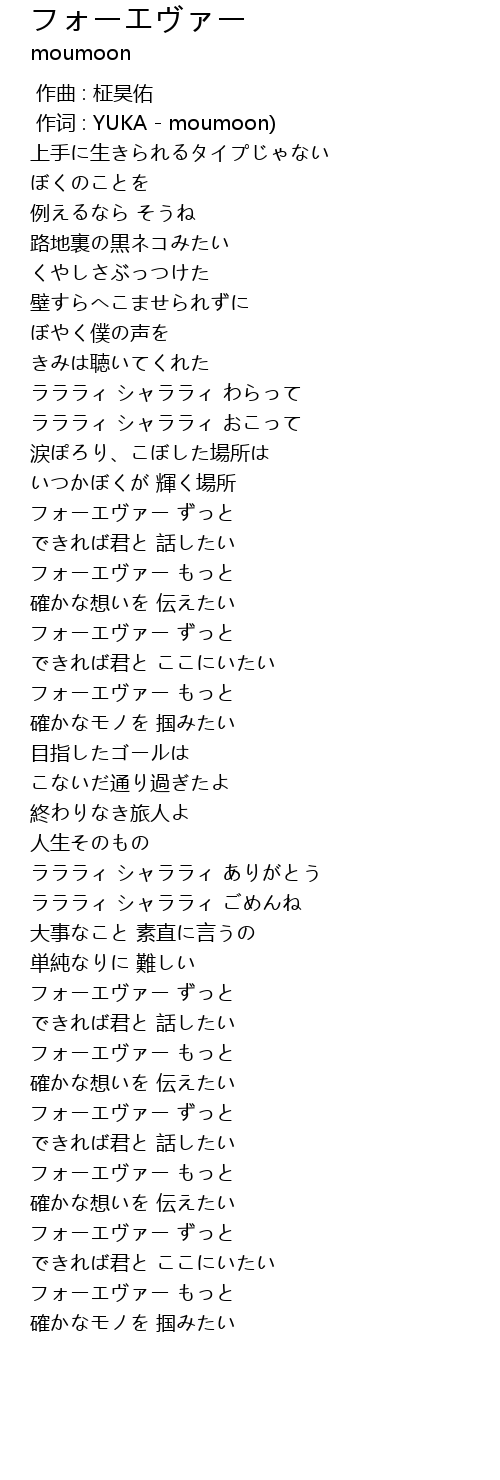 作词 : YUKA - moumoon) |