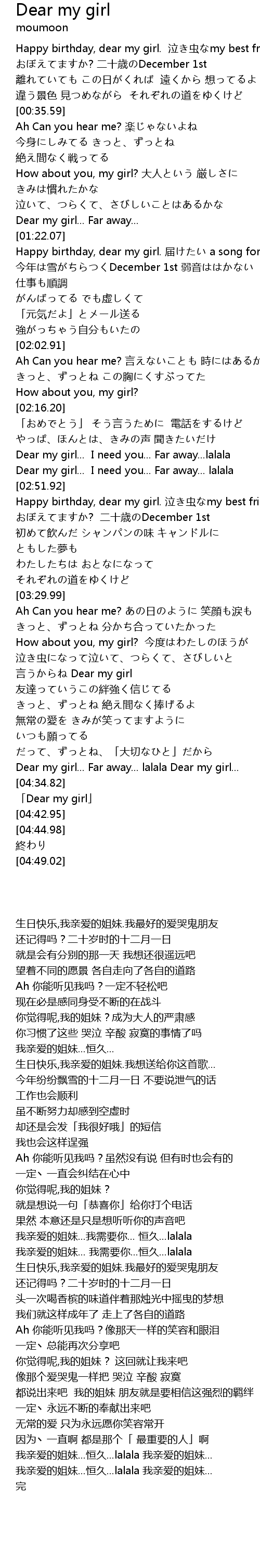| [04:36.99] | 「Dear my girl」 |