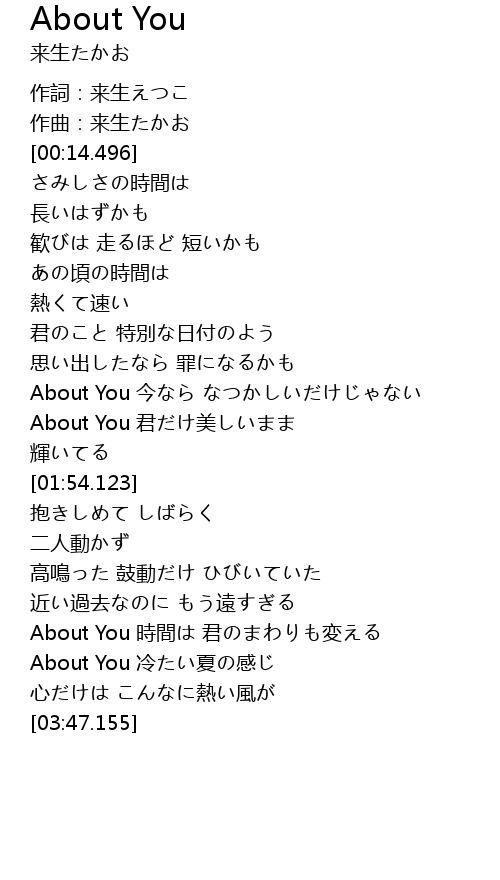 | [03:24.356] | About You 冷たい夏の感じ |