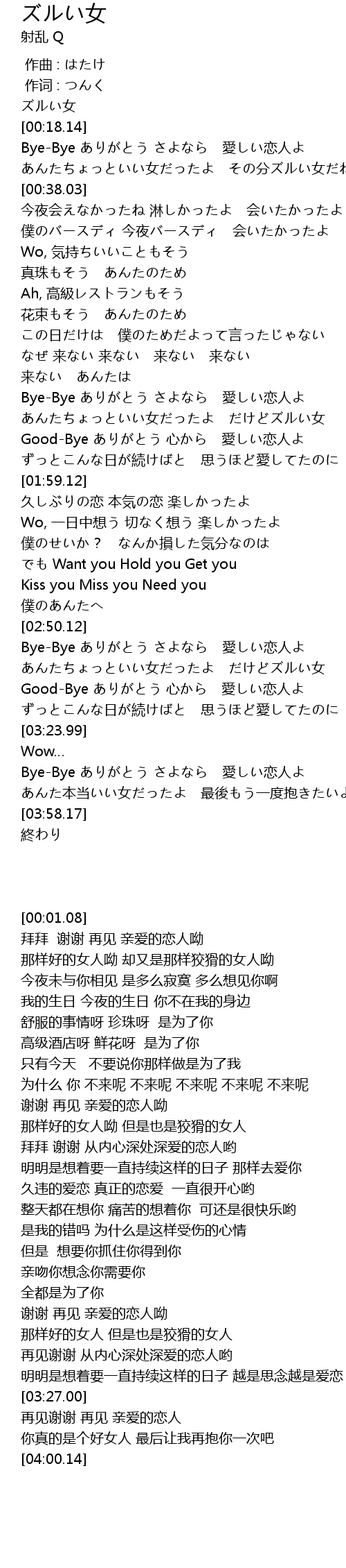 | [01:33.74] | あんたちょっといい女だったよ だけどズルい女 |