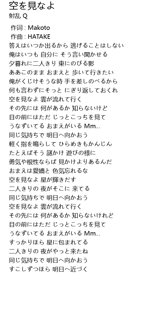 | [02:17.17] | 空を見なよ 星が輝きだす |
