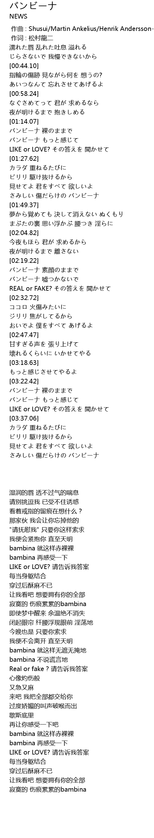 | [02:24.85] | バンビーナ 嘘つかないで |