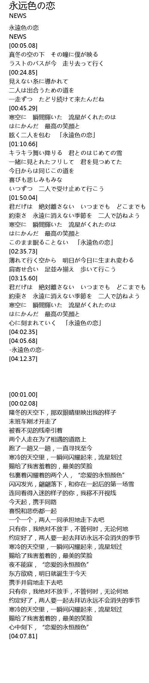 | [01:01.56] | 眩く二人を包む 「永遠色の恋」 |