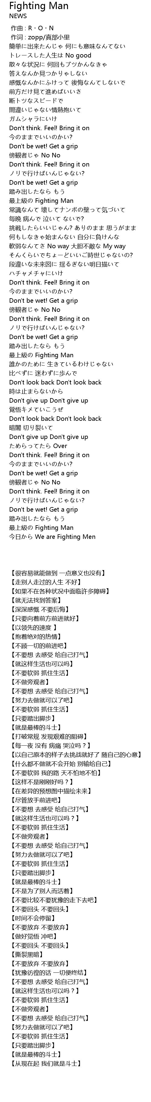| [02:14.17] | zuì shàng jí Fighting Man |