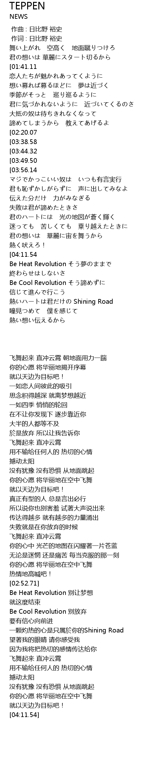 | [02:52.71][04:11.54] | NEWS-TEPPEN |