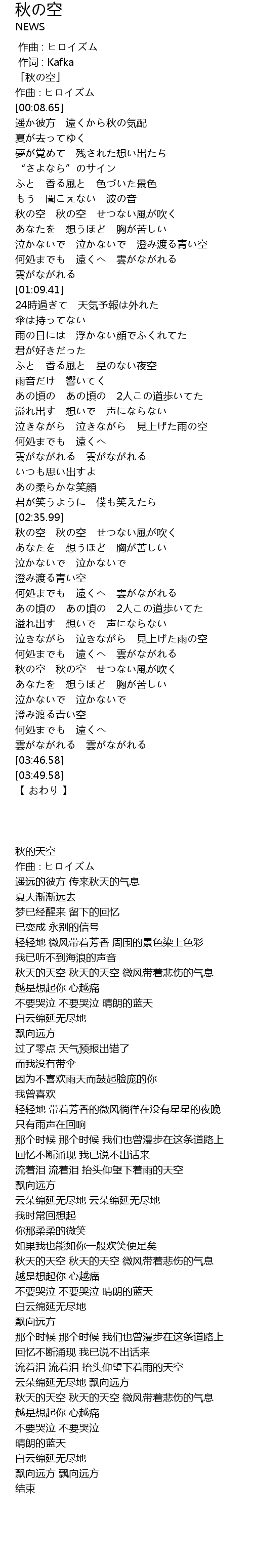 | [00:42.17] | 秋の空 秋の空 せつない風が吹く |