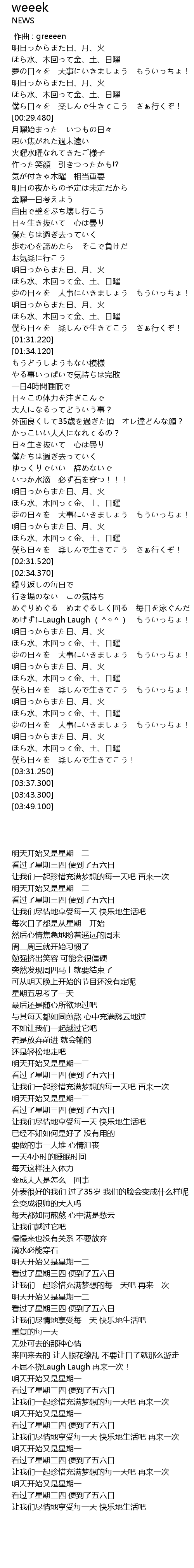 | [00:34.540] | 月曜始まった いつもの日々 |