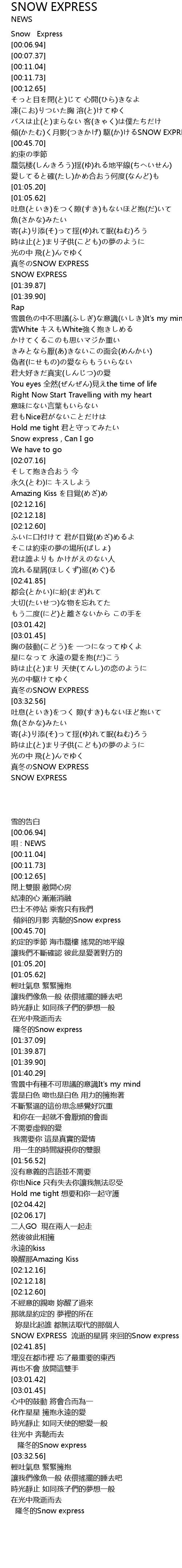 | [01:32.17] | 真冬のSNOW EXPRESS |