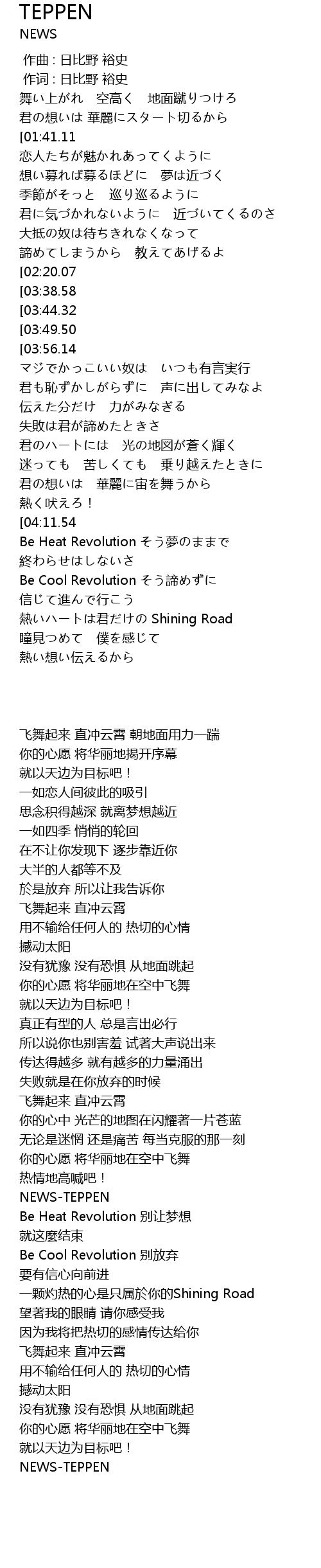 | [02:52.71][04:11.54] | NEWS-TEPPEN |