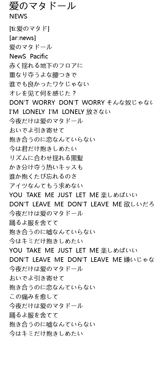 | [00:35.16] | DON' T WORRY DON' T WORRY nu |