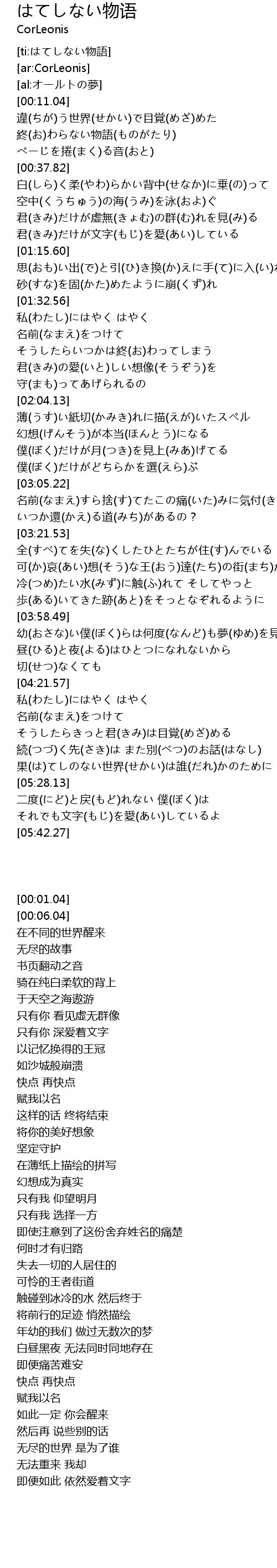 | [00:24.73] | 終(お)わらない物語(ものがたり) |