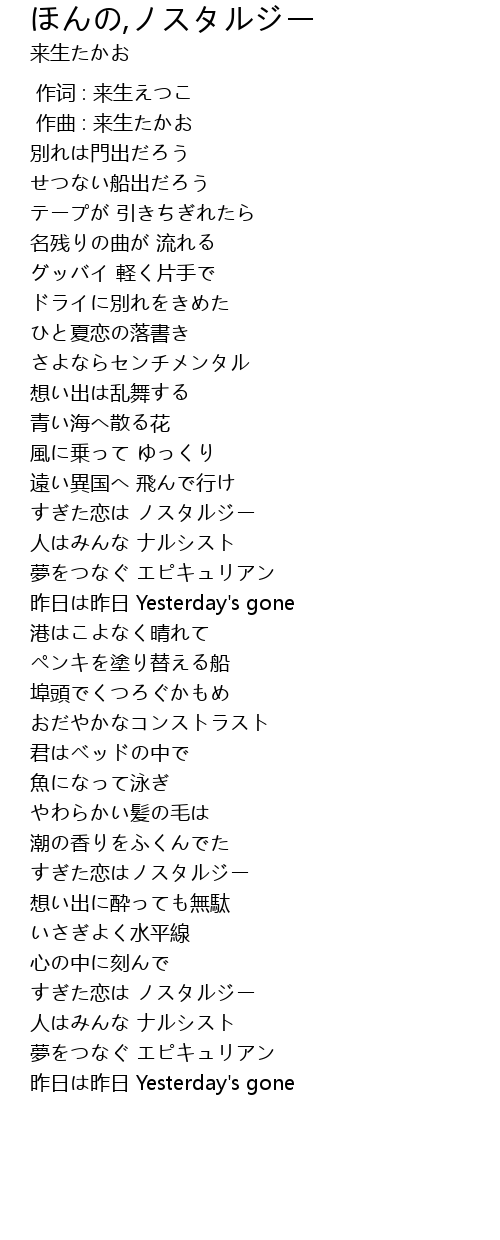 | [02:44.062] | すぎた恋は ノスタルジー |