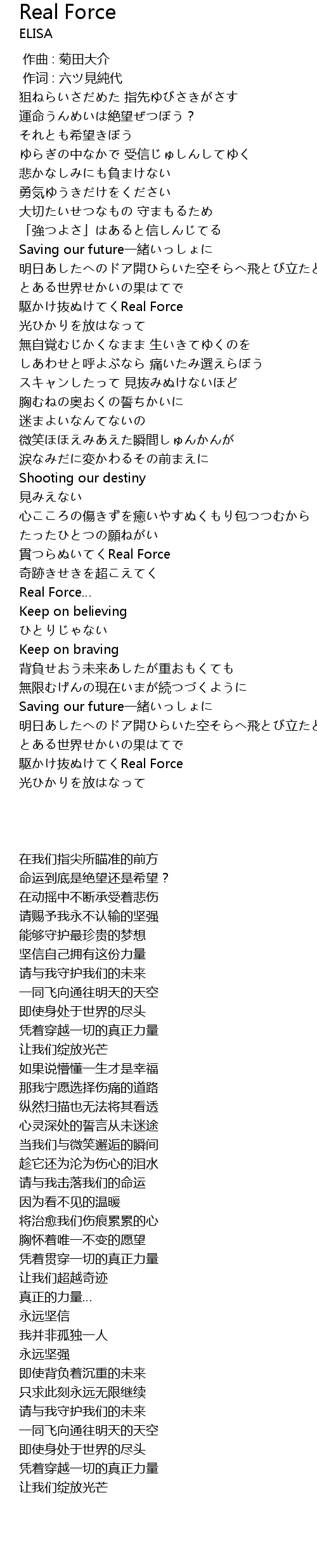 | [03:35.410] | 駆かけ抜ぬけてくReal Force |