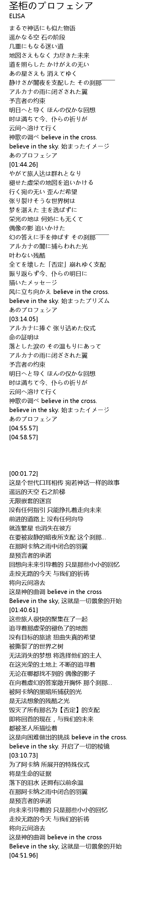 | [04:39.36] | 神歌の调べ believe in the cross. |